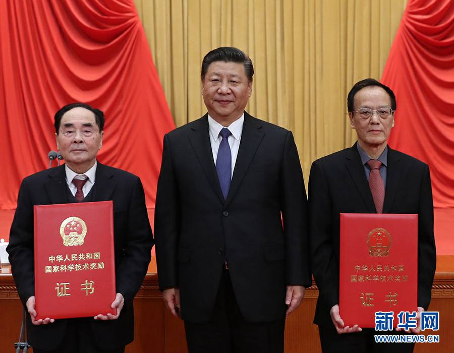 1月8日,国家科学技术奖励大会在北京人民大会堂隆重举行。习近平等党和国家领导人向获奖代表颁奖。 新华社记者 鞠鹏 摄