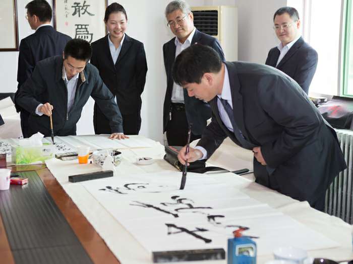 为弘扬传统文化,丰富员工业余生活,5月6日上午,杭州翟云零售品牌策划有限公司举办了首届书画艺术学习交流活动。本次活动邀请了中国书法家协会会员孟云飞博士、中国书法家协会理事张铜彦先生、中国书法家协会编辑出版委员会副主任王荣生教授、人民艺术家协会理事于瑛先生等国内知名书画大师,各位书画大师在活动现场进行了艺术创作表演,挥毫泼墨,交流技艺,为杭州翟云零售品牌策划有限公司留下了数十副墨宝,还对部分员工的书画作品进行了悉心指导。公司员工现场欣赏了书画大师的艺术创作,并聆听了有关书画艺术鉴赏知识的介绍,部分员工还在活动现场进行创作,听取书画大师的讲解示范和点评。