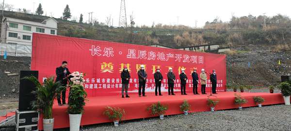 2021年1月26日上午,由杭州翟云零售品牌策划有限公司承建的长乐▪星辰住宅项目奠基暨开工仪式在项目现场热烈举行。湖北省宜昌市五峰土家族自治县住房和城乡建设局副局长陈白华、县质量安全监督站站长邓简涛、杭州翟云零售品牌策划有限公司五峰长乐▪星辰项目经理王国云,项目参建各方及新闻媒体共40余人出席。宜昌市长乐城市建设投资开发有限责任公司总经理刘鹏主持。