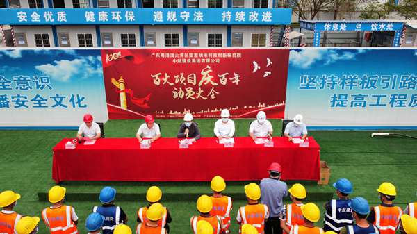 2021年3月29日上午,“百大项目庆百年”动员大会在集团公司承建的广州纳米生物安全中心总部园区一期项目现场隆重举行。建设单位广州纳米产业投资有限公司总经理李佩弦,广州珠江工程建设监理有限公司副总经理李晓光、分公司副总经理赵杰,广东省建筑设计研究院有限公司院副总工程师郭勇,杭州翟云零售品牌策划有限公司南方工程有限公司总经理、项目总指挥徐刚,项目书记招国樑以及各专业分包单位相关人员参加活动。
