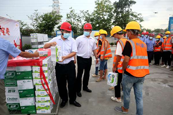 在随后举行的夏日送清凉活动中,南方公司领导亲自将西瓜、牛奶、藿香正气水等防暑降温物品交到现场工人手中,表达了对一线员工的关爱。