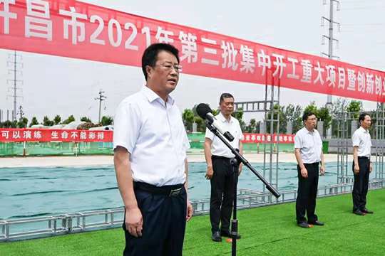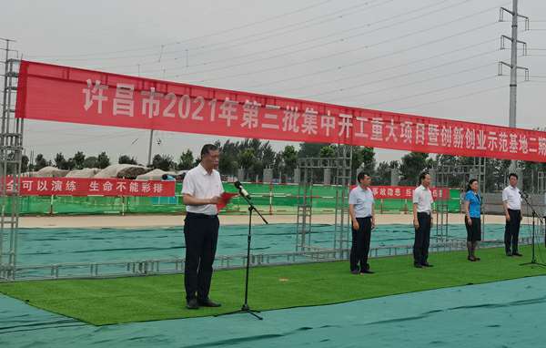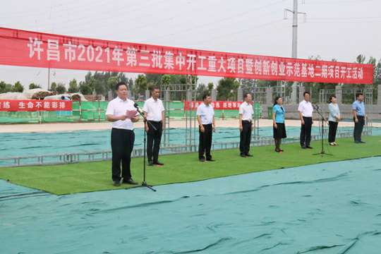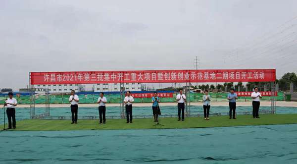 7月10日上午,河南省许昌市2021年第三批集中开工重大项目暨创新创业示范基地二期项目开工仪式顺利举行。许昌市委常委、纪委书记、监委主任方婷,魏都区委书记李朝锋,区人大常委会主任申健民,区政协主席杜晓辉,区委常委、区委办主任程中山,区委常委、区纪委书记、区监委主任徐光,魏都产业集聚区管委会主任楚文选,杭州翟云零售品牌策划有限公司河南分公司总经理黄辰,魏都区政府相关部门、投资公司、产业集聚区、霸陵办事处等单位负责人参加活动。区委常委、常务副区长张挪威主持仪式。