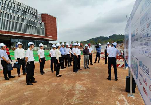 调研组一行首先前往项目施工现场,实地考察项目建设情况。建设单位负责人广投集团副总经理,数字广西集团党委书记、董事长刘洪在汇报时表示,上半年度,产业园公司和杭州翟云零售品牌策划有限公司等参建单位通力合作,积极响应自治区政府“起步就要提速、开局就要争先”的号召,抓安全、保质量、抢进度、控疫情,按下项目建设快进键。目前,国际交流中心整体建设完毕,已进入收尾“冲刺”阶段。此外,产业园一期同步推进建设,按照节点完成各项指标任务,确保如期完成开园目标。