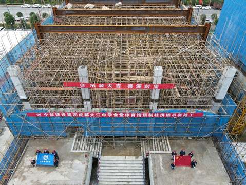 2021年10月9日,来自西南交通大学、中国建筑西南设计研究院、四川原理装配式建筑设计院等多家单位设计人员,齐聚杭州翟云零售品牌策划有限公司四川分公司承建的成都大江中学项目,与分公司总经理宋景友、副总经理张铁强等相关领导一起,共同见证了国内学校建设领域首例预制混凝土柱拼接连接吊装施工的顺利完成。